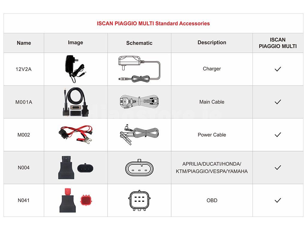 - adapter for Aprilia, Derbi, Gilera, Moto Guzzi, Piaggio, and Vespa motorcycles